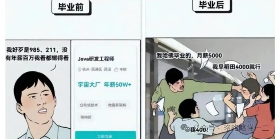 然而等到毕业后发现就业时可以说是“一岗难求”,比自己优秀的人太多了,自己就自降身价了,只是降的有点多,从年薪百万都懒得看,到4000块钱挤破脑袋,好一个能屈能伸。