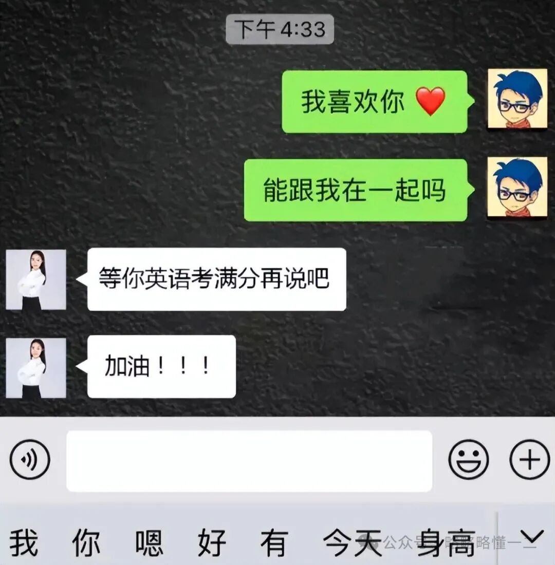 看头像,就是一位青春靓丽的女老师,她机智的处理巧妙的回答:等你英语满分再说吧!