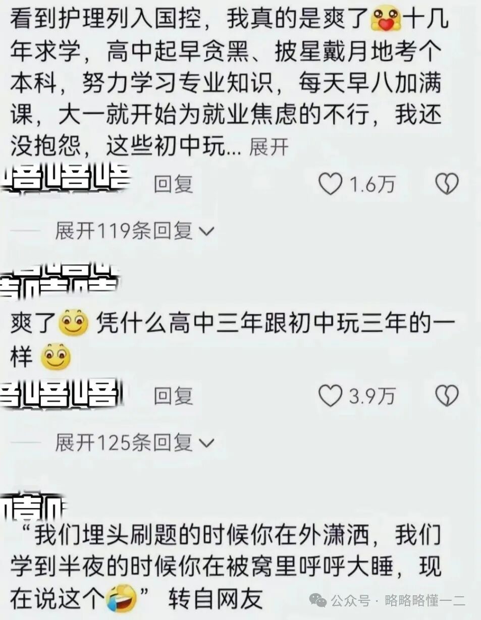 不过,护理学被列入国控专业后,一些中专生坐不住了,纷纷在网上发文吐槽说,结果遭到了群嘲。
