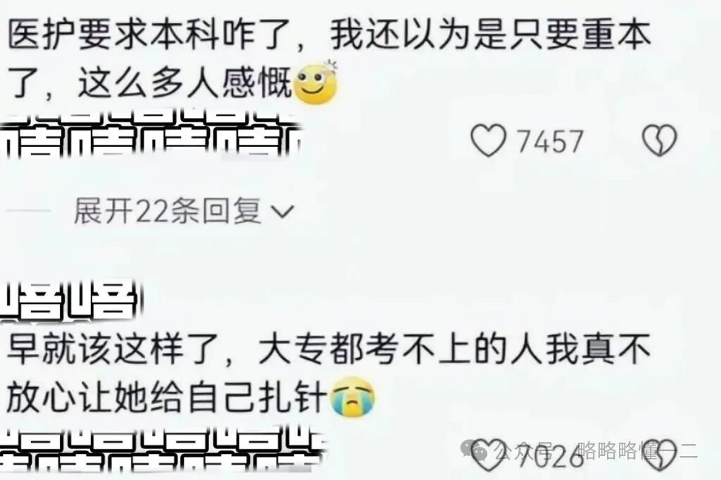 所以,从对患者负责任的角度来看的话,由中专提到大专真的不过分了,网友对此表示赞同的声音也比较多,甚至有网友直言,如果连大专都考不上的人给自己扎针,真的会不放心。