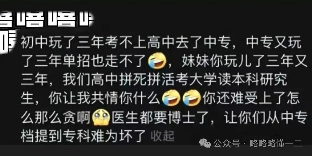 这些发文吐槽的同学,她们的学习规划通常是上中专,然后读大专,可能还有机会参加一下专升本考试,再读两年拿下本科文凭。