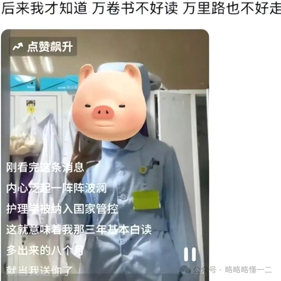 这名中专女生说看完这个消息后,内心泛起波澜,护理学被纳入国控专业,意味着这三年白读了,多出来的八个月就当我送你了。