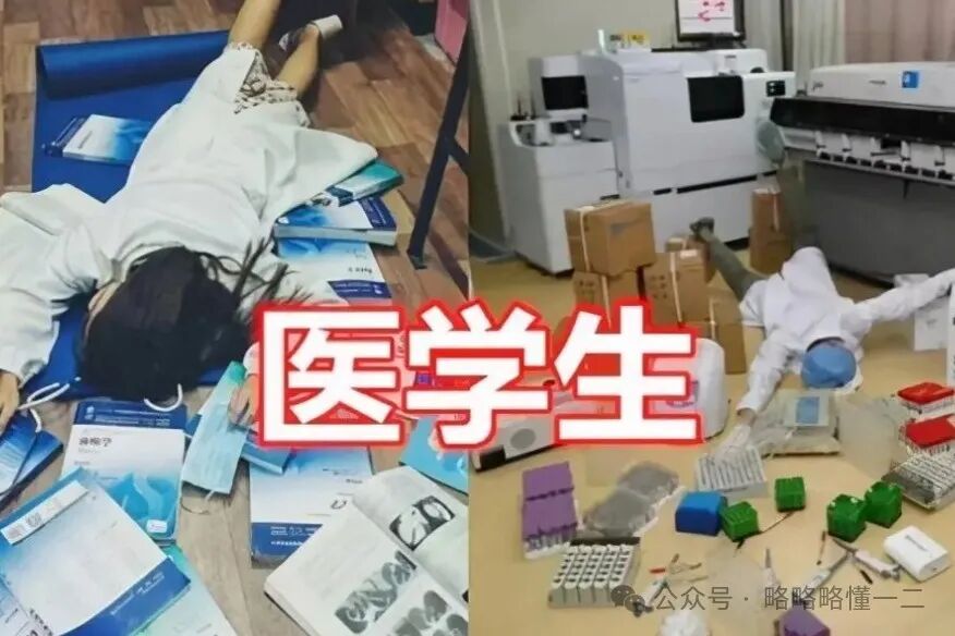 看到大家都在秀自己专业的“最多”,医学生就笑笑不说话,医学生最多的可能是“黑眼圈”了。