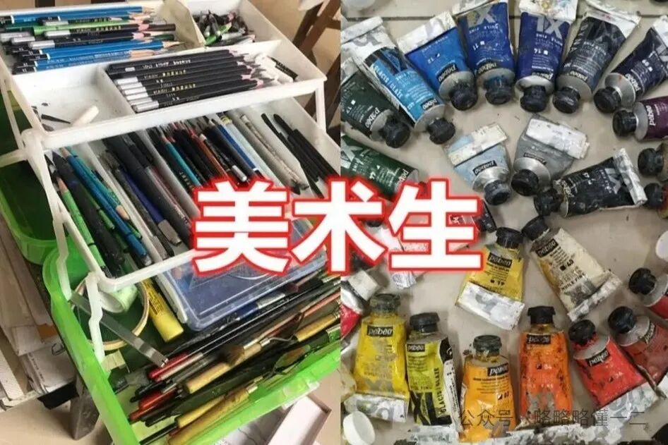 另一个艺术专业美术专业,大学生们最多的无外乎就是画纸、画笔、颜料这几样,美术专业的学生也很不容易。