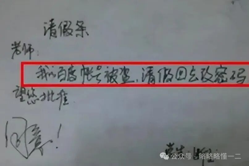 还有同学百度账号被盗了,请假回去改密码,没想到老师大笔一挥,竟然批准了,可能辅导员也想开了,“想走的人留不住”。