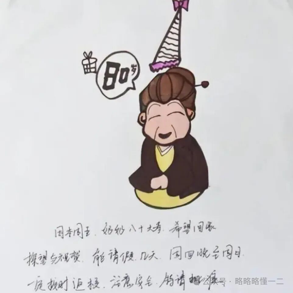 不愧是大学生去请假,想法都不一样,可可爱爱的方式让辅导员老师很难拒绝,请假理由是奶奶过80大寿,想回家探望并给奶奶过生日。