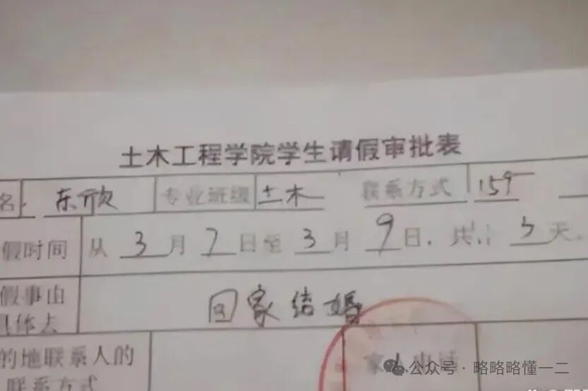 但这名同学请假的天数真的不多,回家结婚只请三天假期,看来还是挺重视学业的。