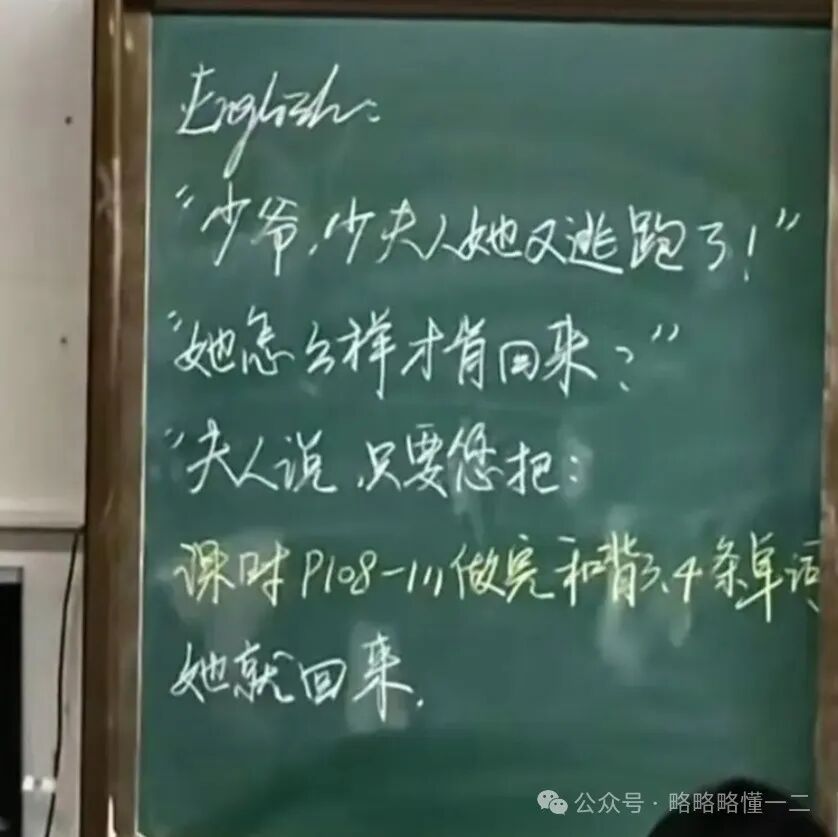 比如这位英语老师也很有意思,留作业时把小说情节编进去了,为了帮少爷追回少夫人,这个作业同学们怎么也得完成。