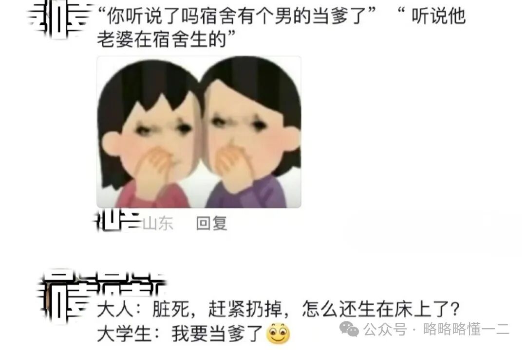 于是第二天学校里就会流传着这样的话,“你听说了吗?宿舍有个男的当爹了?”还会听到各种版本的话,“听说他老婆在宿舍里生的?”