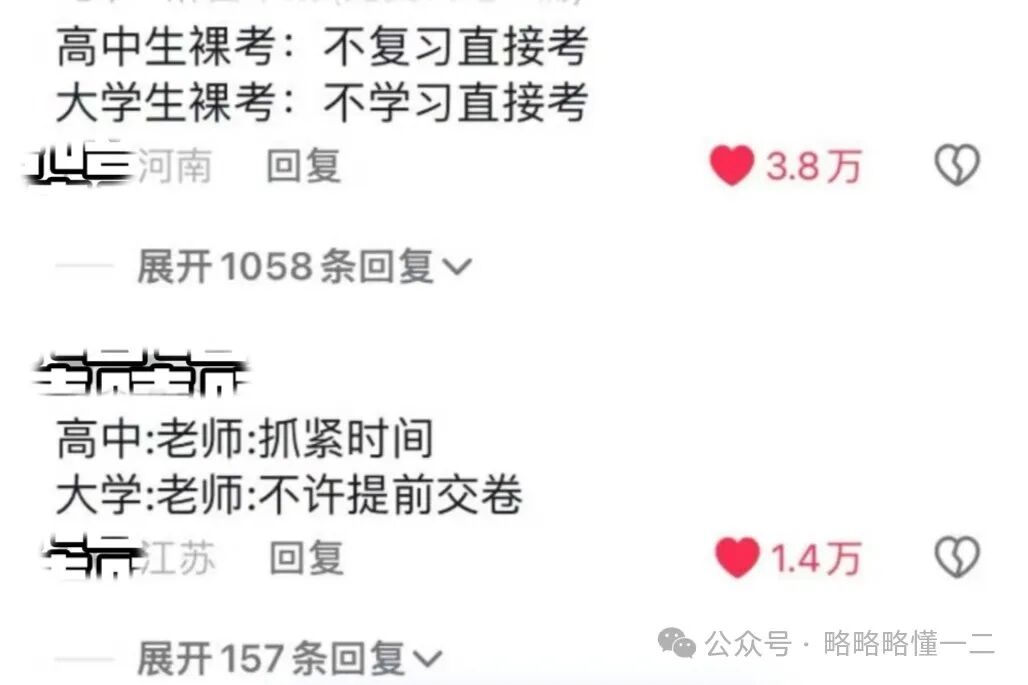 网友们也在网络上分享了高中生和大学生对同一件事有什么不同的态度,大学生直言:谁在我这安监控了?这不就是我自己吗?
