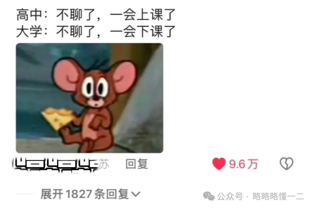 关于上课这件事,高中生会说不聊了一会上课了,在课堂上抓紧一切时间,提升课堂效率,而大学生会说不聊了一会下课了。