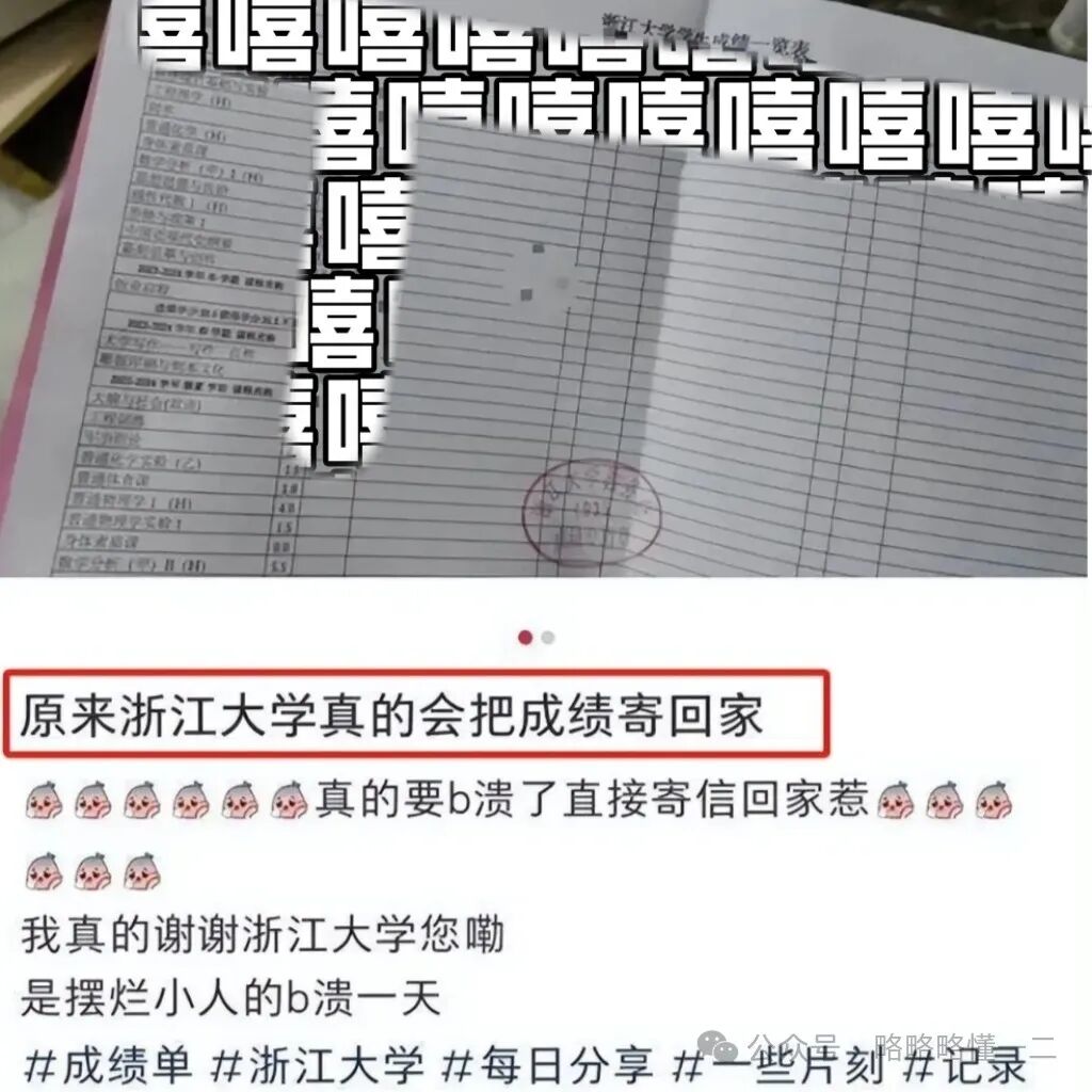 因为浙江大学会把学生的成绩单寄给家长,让学生感到非常崩溃,又是摆烂人崩溃的一天。