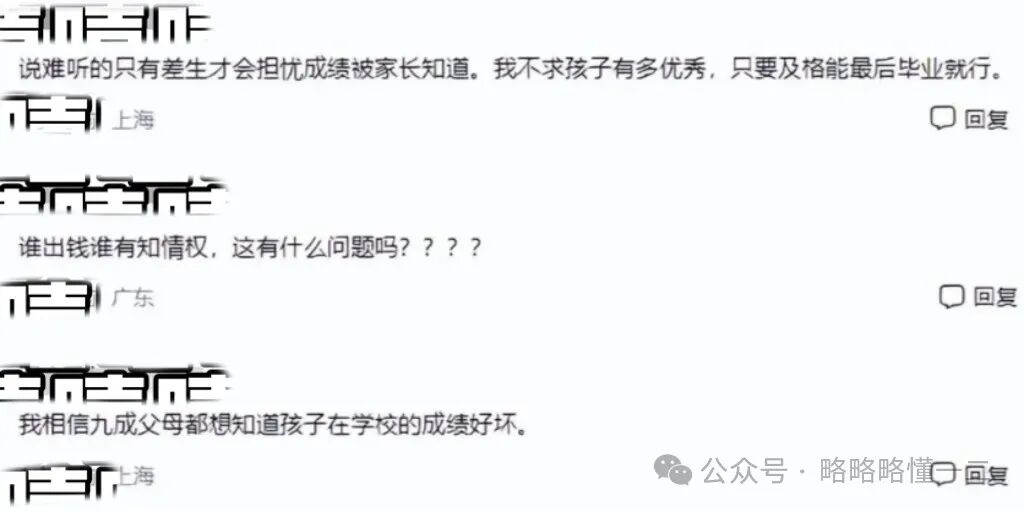 网友的话听起来很有意思,“谁出钱谁就有知情权”,得有九成家长想要知道孩子在学校里的表现,不然孩子可能都面临被退学的可能了,家长还蒙在鼓里。