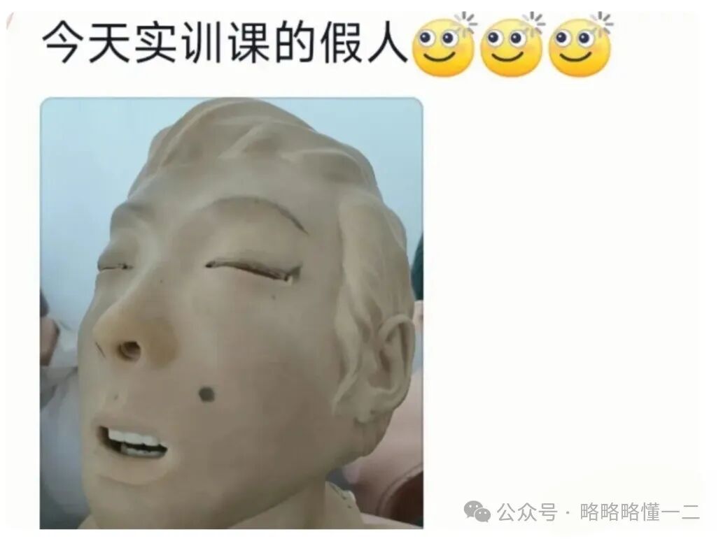 有的假人看起来精神状态还可以,不知道是不是医学生无微不至的照顾,让他们“好转”的,甚至可以当表情包了。
