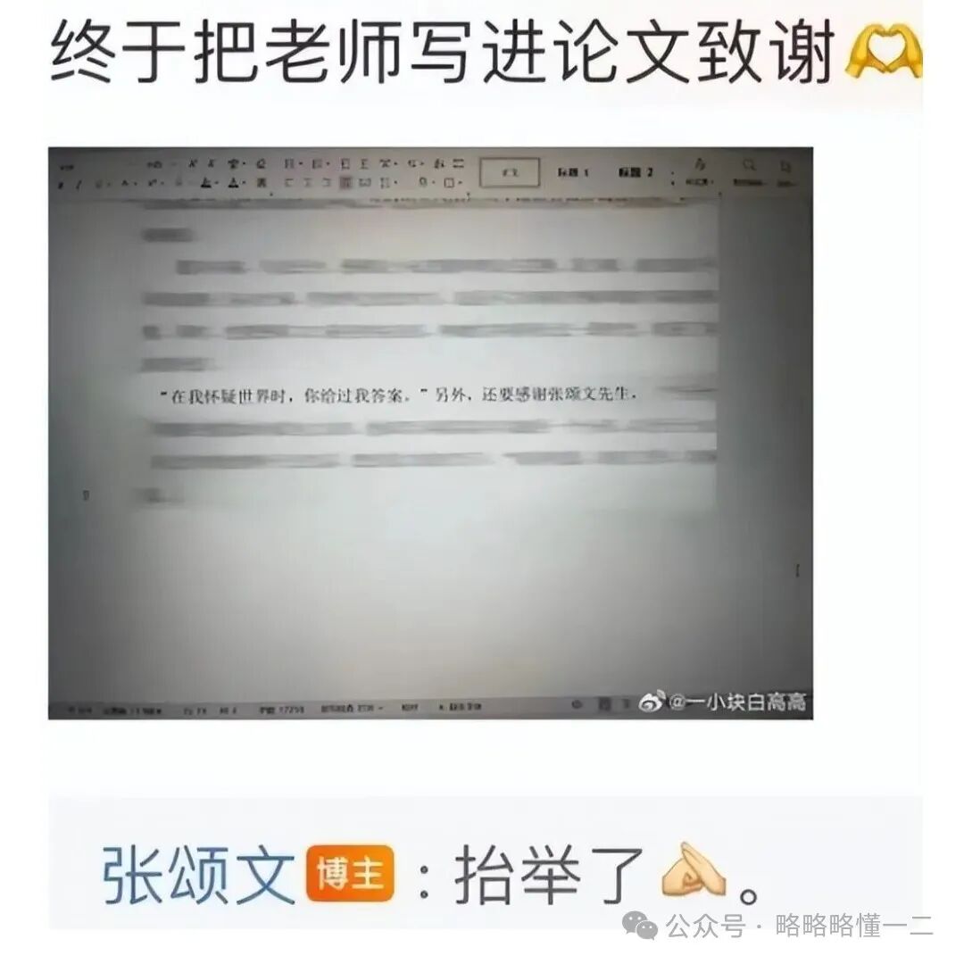 然而,一名大学生在论文致谢的时候感谢了明星张颂文,瞬间引起了热议。