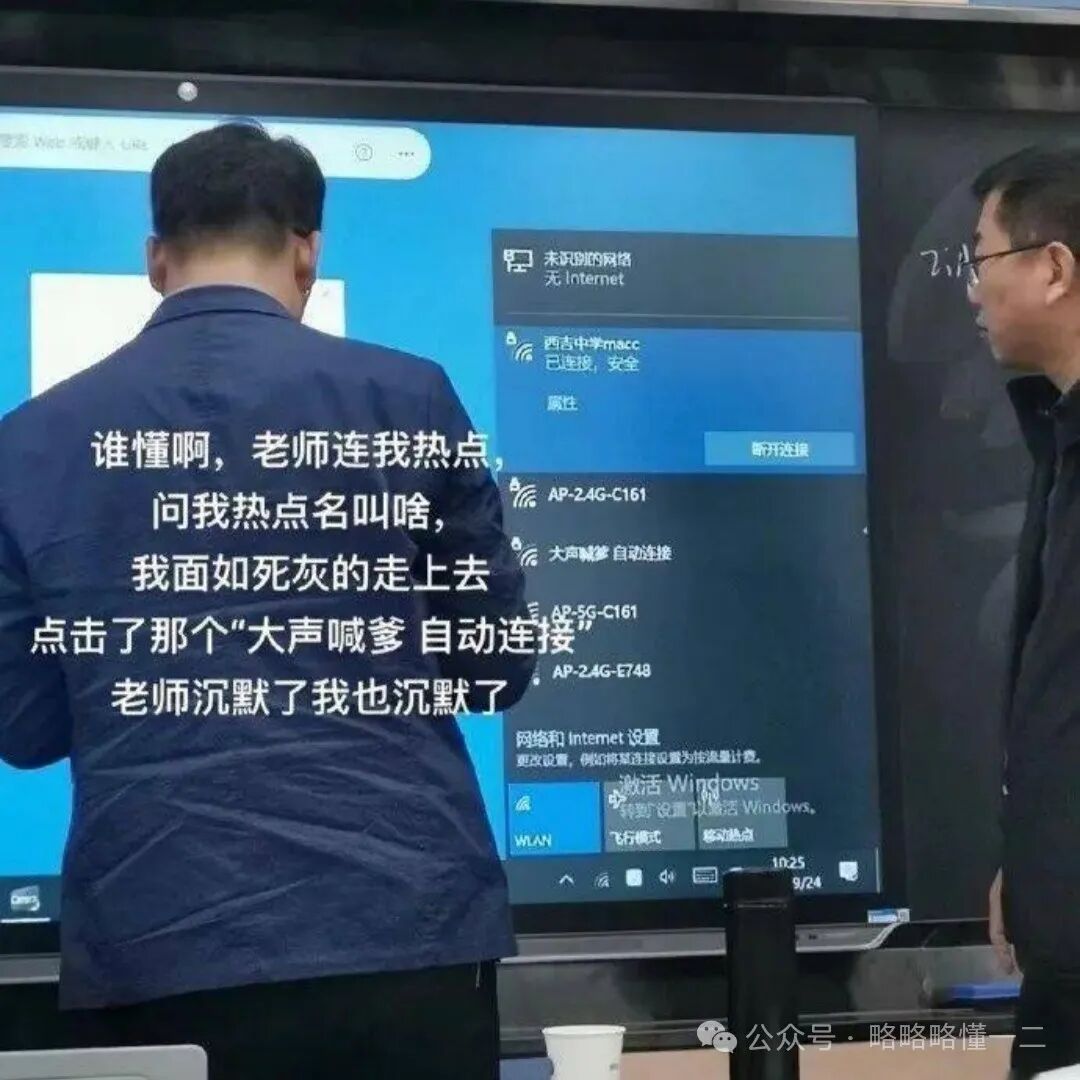 然后高潮就来了!点了那个名字叫“大声喊爹自动连接”的热点,这一刻真的不敢想象有多尴尬,老师沉默了,大学生也沉默了。