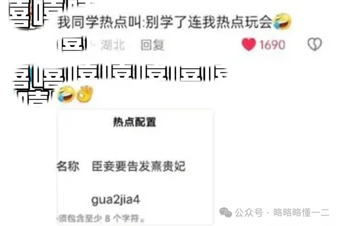 大学生说自己同学的热点名字叫:别学了连我热点玩会,这是反学习内卷的一个方法,自愿奉献出流量,也不希望别人再学习了,这一招真是太绝了。