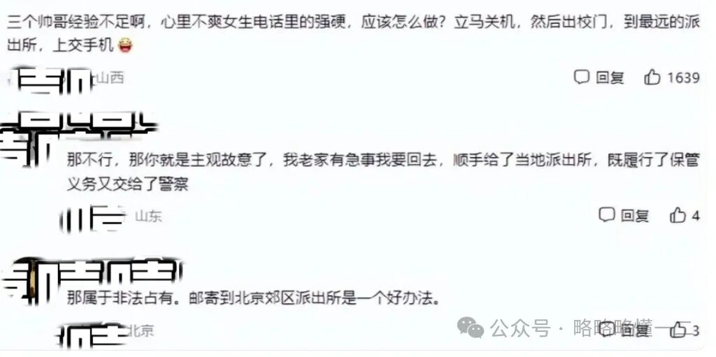 女生接下来还有话说,说捡到手机本身就应该归还,他大可不还试试,还有一种威胁他人的感觉。略略看到,真的服了。