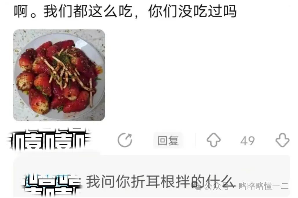 但好像大学生并不觉得奇怪,还表示都这么迟,你们没吃过吗?没吃过但不想尝试,草莓拌调料吃已经有点离谱了,没想到还是和折耳根一起拌。
