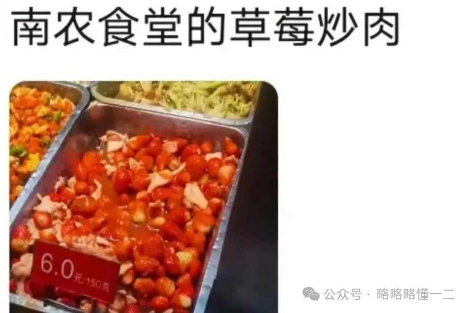 有一些学校像农业大学,很多蔬菜和水果都是自己种的,自己种的太多吃不完,食堂大厨就来了创新灵感,“草莓芹菜”、“年糕菠萝圣女果”、“猕猴桃火龙果炸鸡块”……