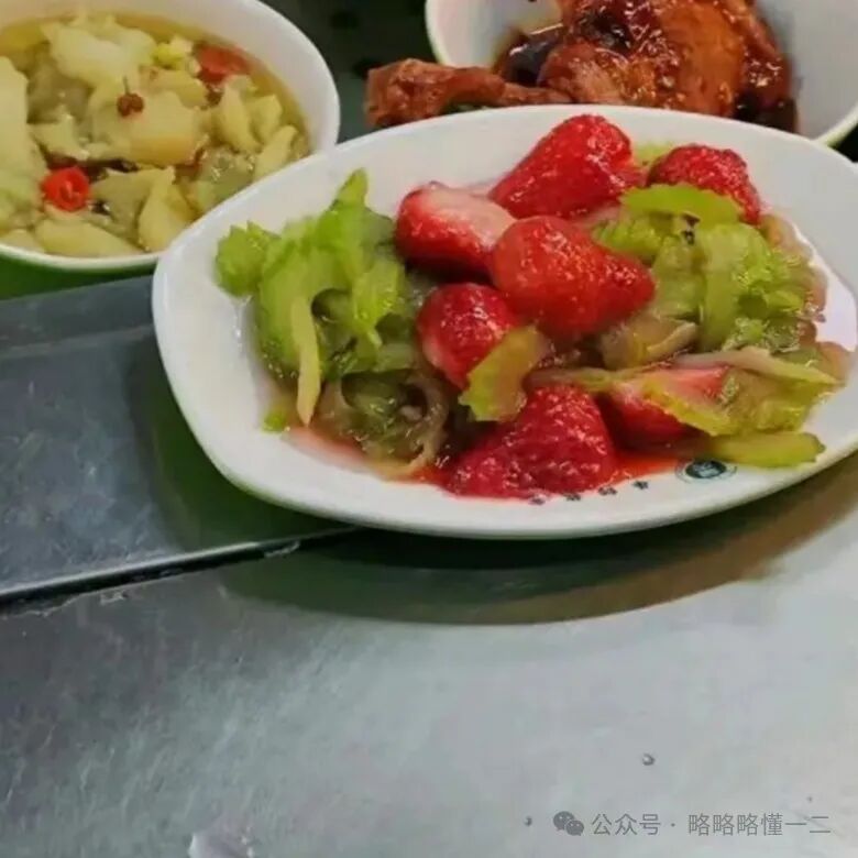 草莓炒肉,甜甜的肉?如果草莓炒肉大家能忍,接下来这个绝对无法忍受,折耳根拌草莓,究竟草莓犯了什么错?