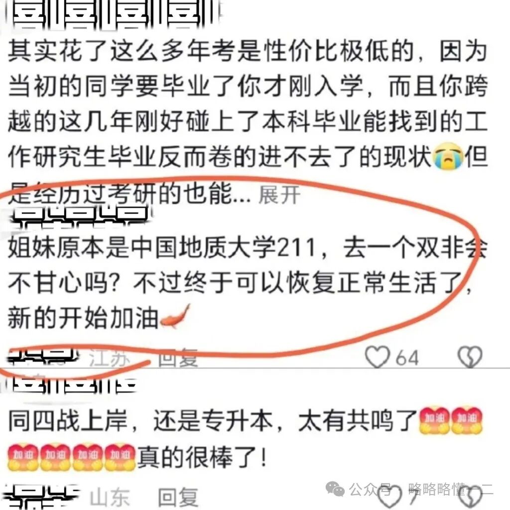 还有人说她本来是211大学的毕业生,考了好几年去一个双非院校能甘心吗?但好在不用受考研折磨了,是一个新的开始。