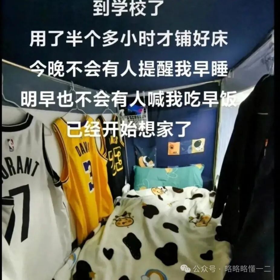 大学生委委屈屈表示到学校了,用了半个多小时铺好床,今天晚上不会有人提醒我早睡,第二天早晨也不会有人喊我吃早饭了,已经开始想家。