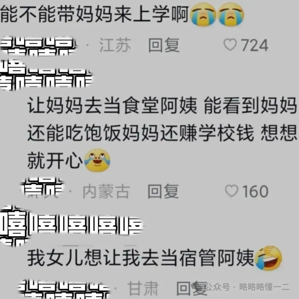 有这种想法的大学生真的不少,还有家长说女儿想让妈妈去当宿管阿姨,大学生怎么感觉像小学生呢?越来越离不开妈妈了,笑笑小时候就想妈妈要是自己的小学老师就好了。
