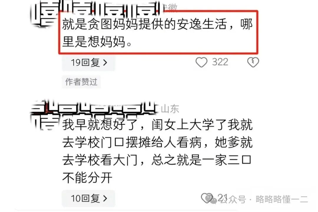 网友说哪里是想妈妈,就是贪图妈妈给提供的安逸生活。