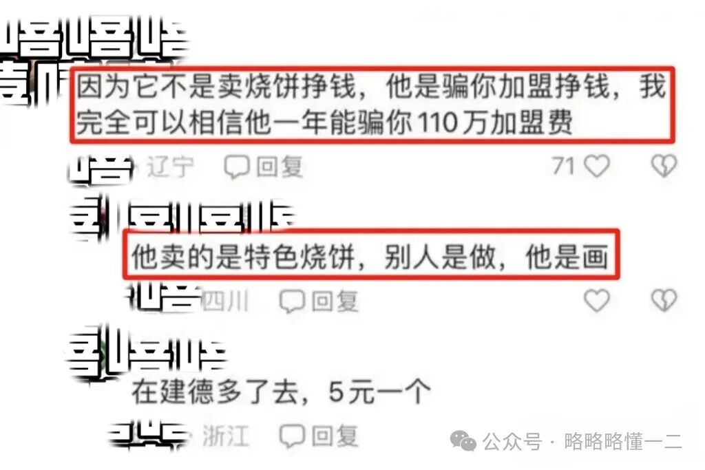 还有网友猜测他本人说创立了自己的烧饼品牌,是不是想通过网络媒体的力量让更多的人加盟自己的品牌,然后获得加盟费,这哪是做饼,而是“画饼”,网友的警惕性真的很高了。