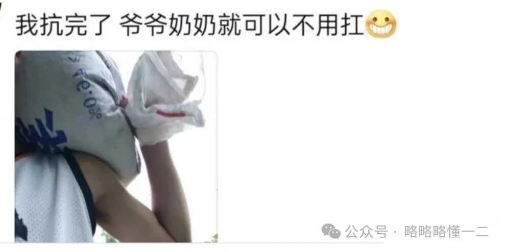 大学生拍下自己扛重物的照片,并且说自己扛完了,爷爷奶奶就不用扛了,笑笑觉得这就是爱最好的传承。