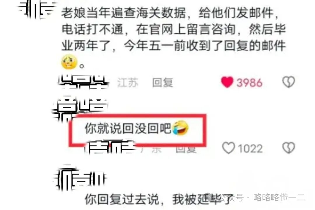 当年大学生需要数据,又是发邮件,又是打电话和留言的,都没有回复,等到毕业两年后收到了回复。网友:你就说回没回吧!