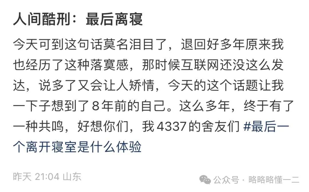 果然人间酷刑,就是大学毕业谁是最后一个离寝。