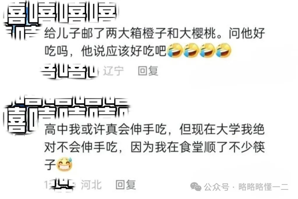 这位家长网友分享了这样的事情,家长给孩子邮了两大箱橙子和大樱桃,问孩子好吃吗?结果儿子回复妈妈说应该好吃吧!