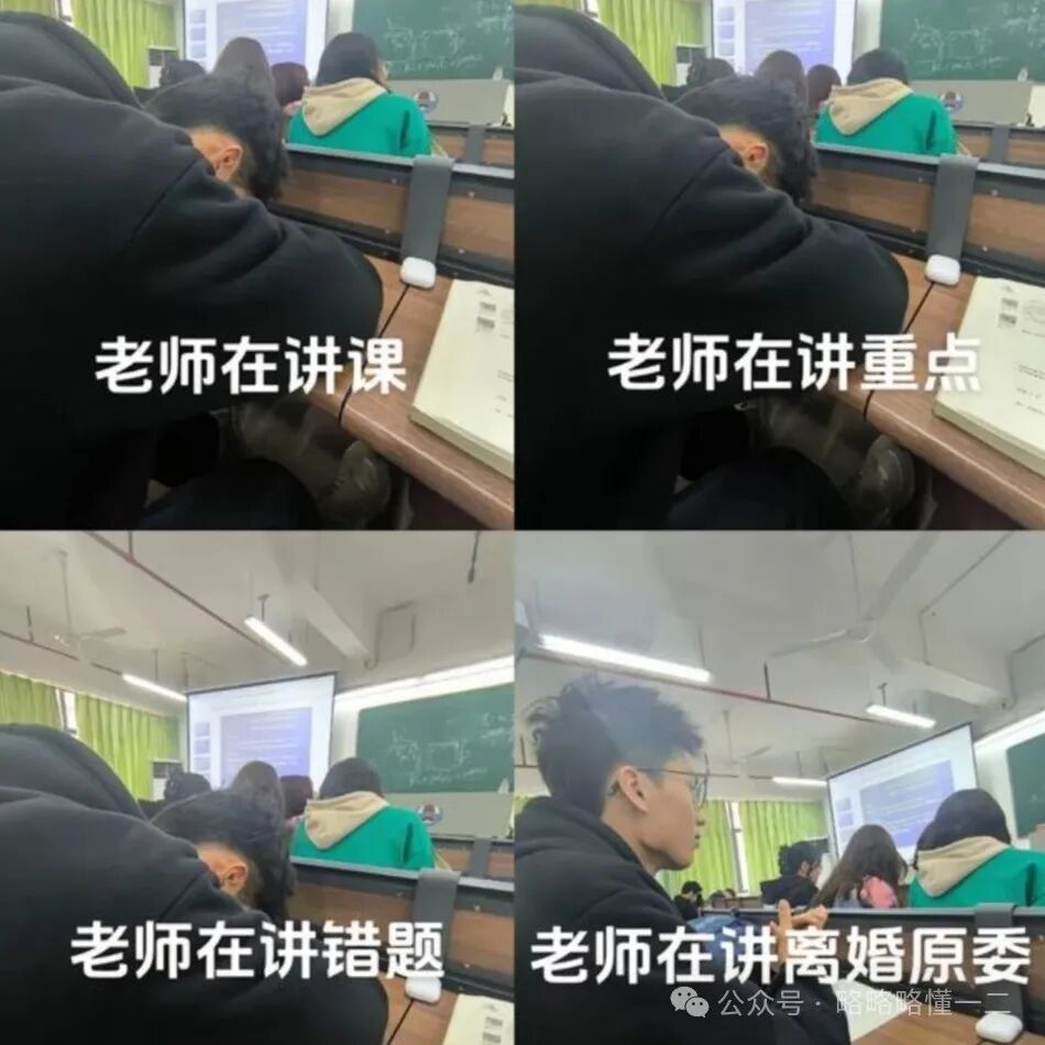 但如果老师在课堂上讲自己离婚的原委,瞬间清醒,大学生:老师其实我也没有多困,上课听讲是必须的,您接着说!后面怎么了。