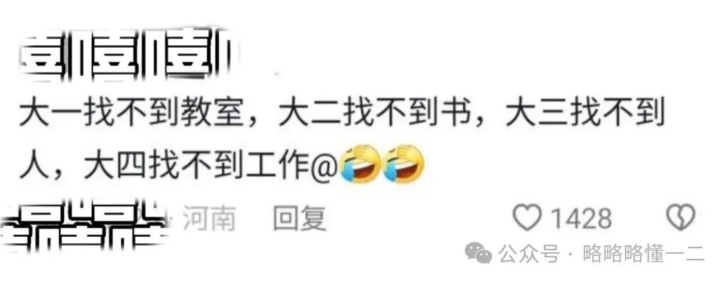 大学生的精神状态被完美概括为:大一找不到教室,大二找不到书,大三找不到人,大四找不到工作。