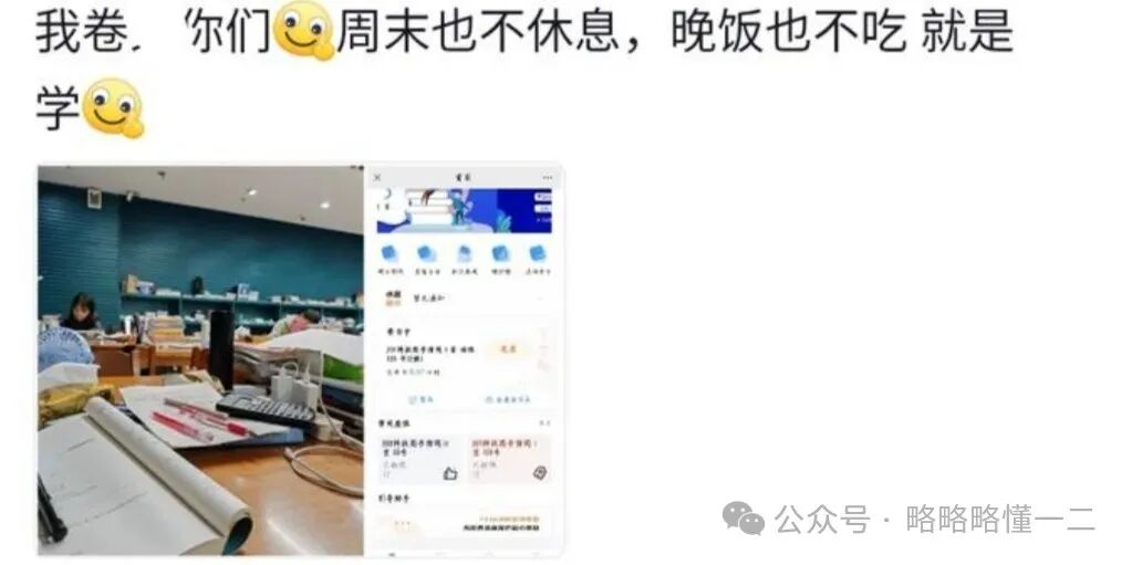 大学生群体中也有精神状态堪忧的,比如这名大学生说自己周末也不休息,晚饭也不吃,就是学习,目的是为了卷同学。