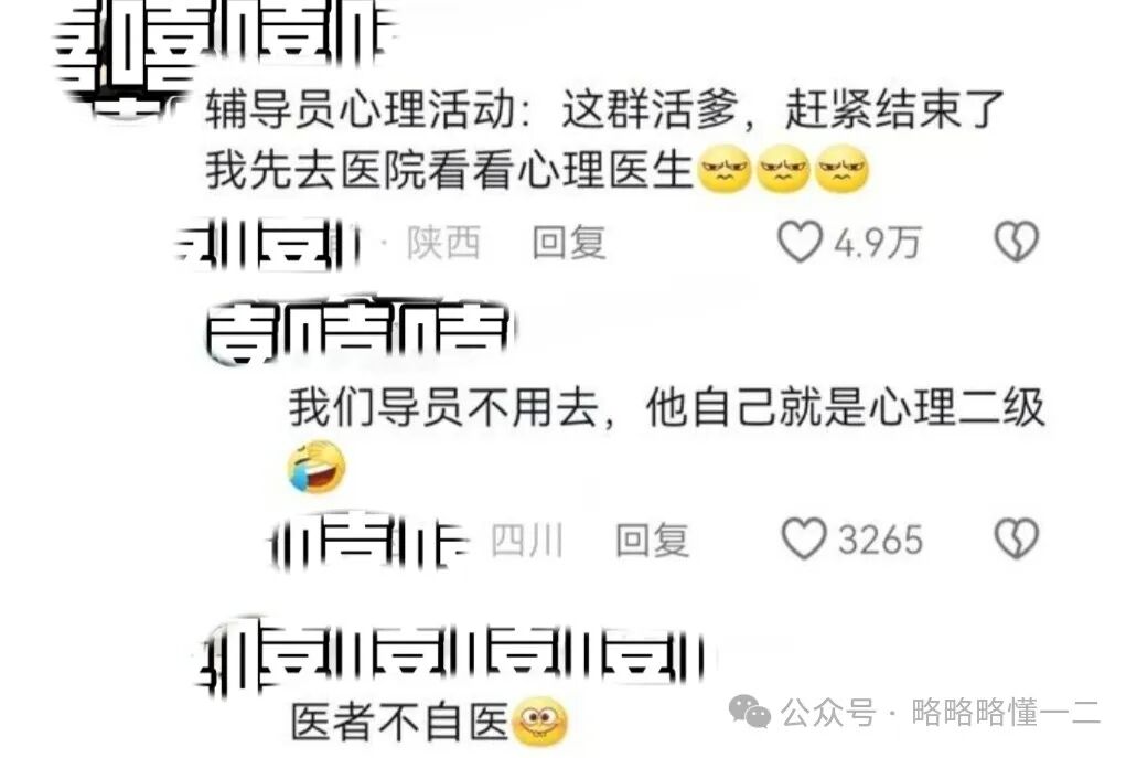 有大学生在线说自己的辅导员不用去,因为他自己就是心理二级咨询师,可网友一句话瞬间心疼辅导员,医者不自医啊!你们就作吧,等没有人愿意当辅导员就好了!