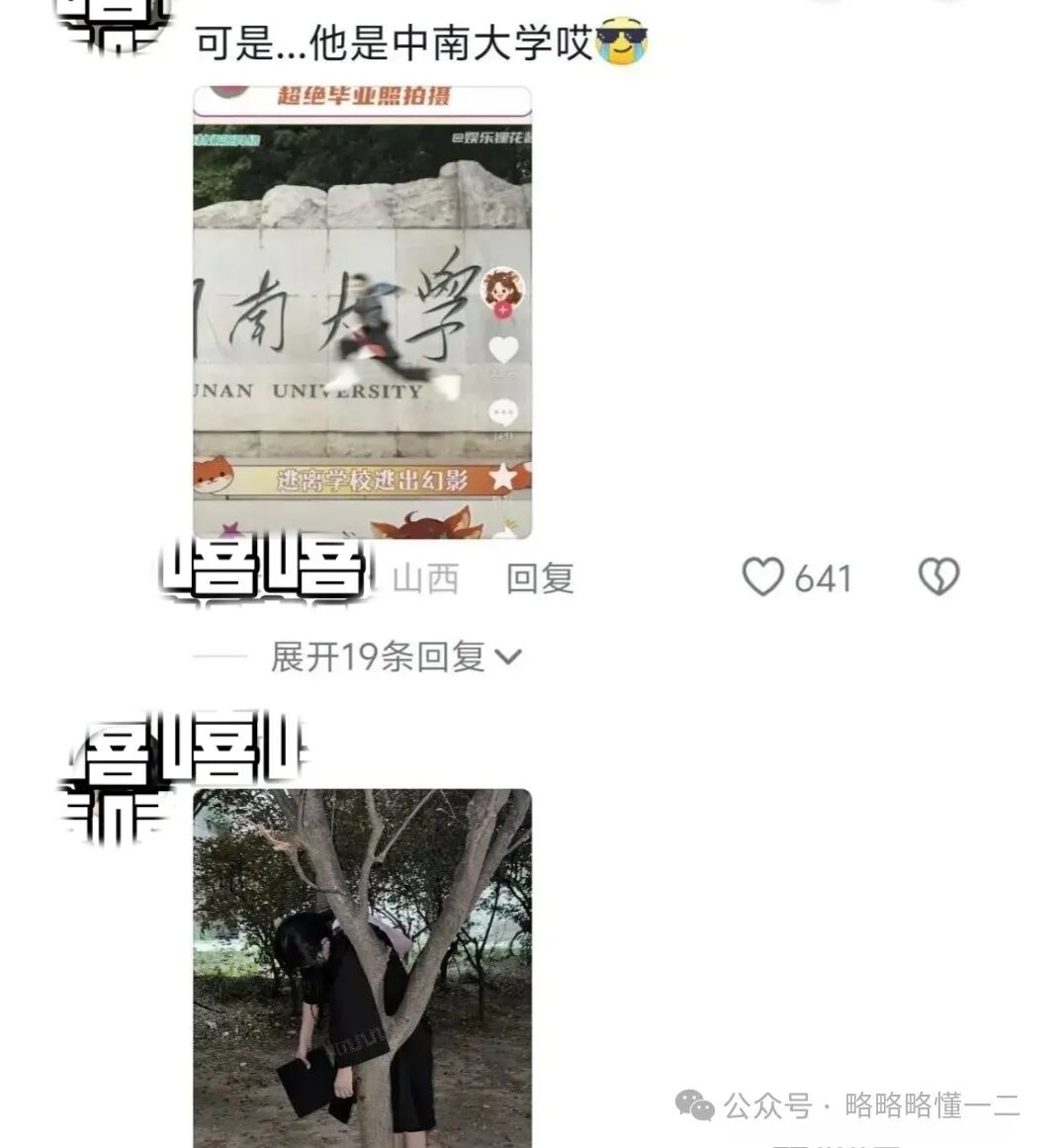 接下来这两名同学的毕业照就有点玄乎了,这名同学听到毕业想要逃离学校,逃离步伐快的都出残影了,然而定睛一看,确是中南大学,好一个“凡尔赛”。