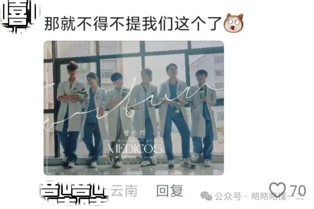 可能是受近几年医学领域影视剧的影响,医学生们突发奇想,本来是很简单的同学们站立拍照,但经过后期构图,滤镜等处理后,一下子变成了影视剧的宣传海报。