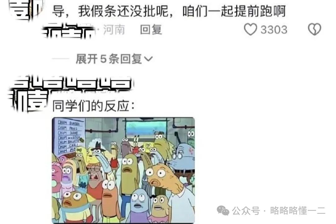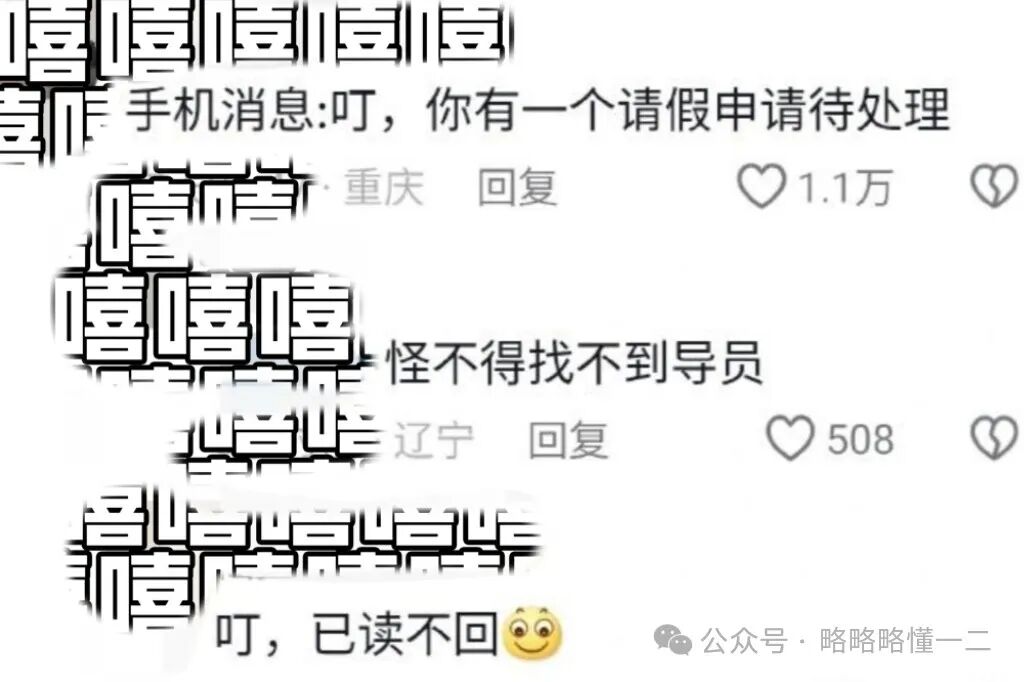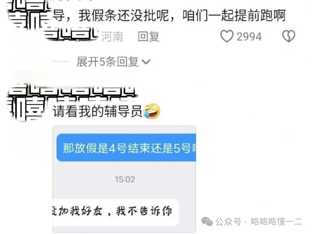 还有气急败坏型的大学生,呼唤导员回来给他批假条,还配上了暴躁的表情包。