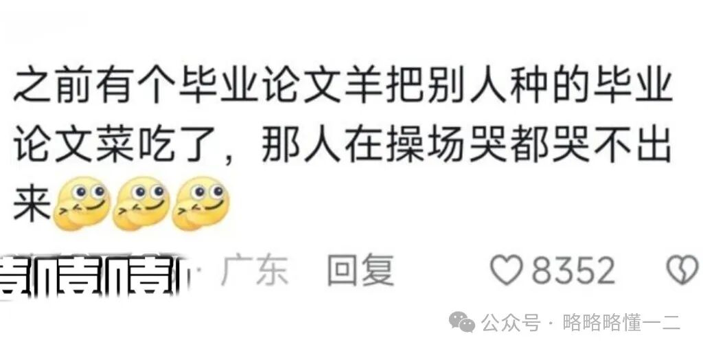 网友分享说有一只毕业论文羊吃了别人种的毕业论文菜,那个人气的在操场上哭都哭不出来,真是太让人心疼了。
