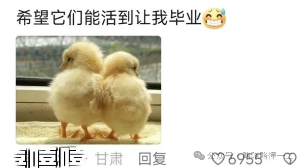 这名同学对着自己的两只小鸡崽说希望它们能坚持到让他毕业。