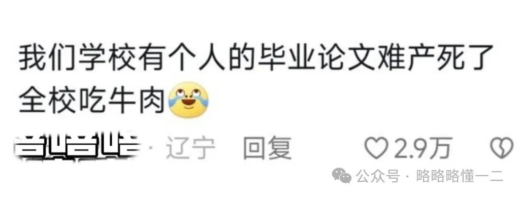 这名同学就更惨了,他的毕业论文牛因为难产不在了,这下好了全校都可以吃牛肉了,唯独他吃不下,心都在滴血。