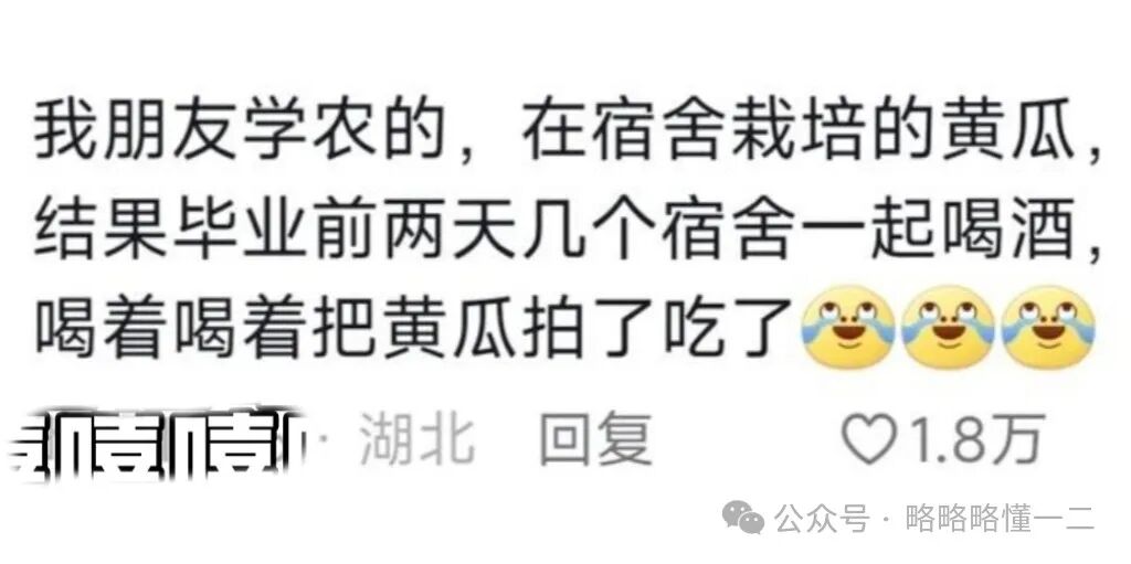 网友说自己的朋友是农学生,在寝室里栽培了黄瓜,结果毕业前几天,几个寝室的同学在一起喝酒,喝着喝着是不是感觉缺下酒菜了?