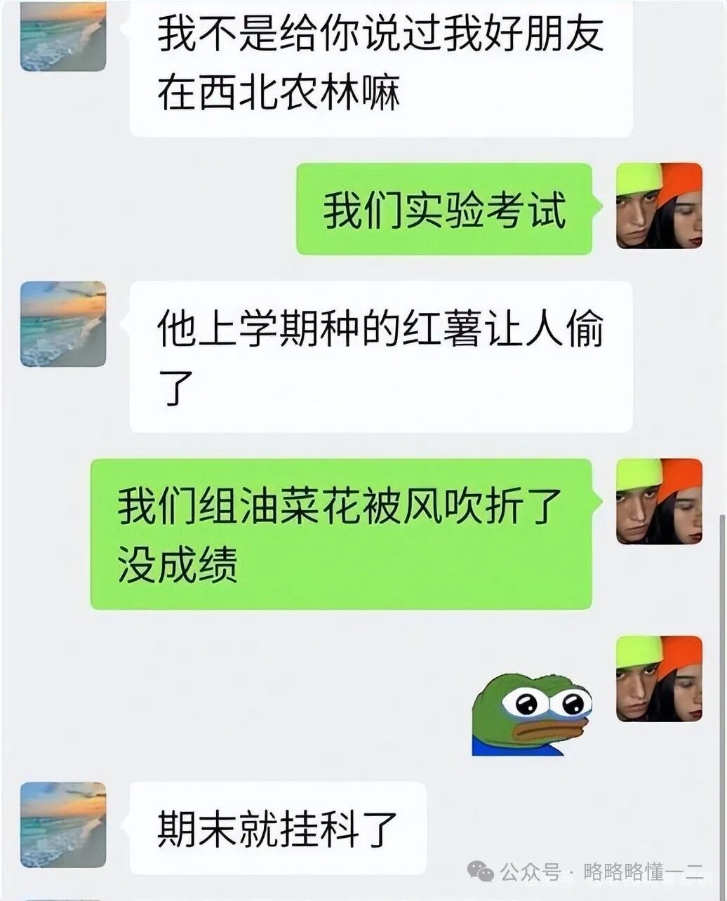 大家了解农学生的经历后就能理解了,农学生:我谢谢你们还讨论我将来毕业后做什么,据我观察,我好像连业都毕不了。