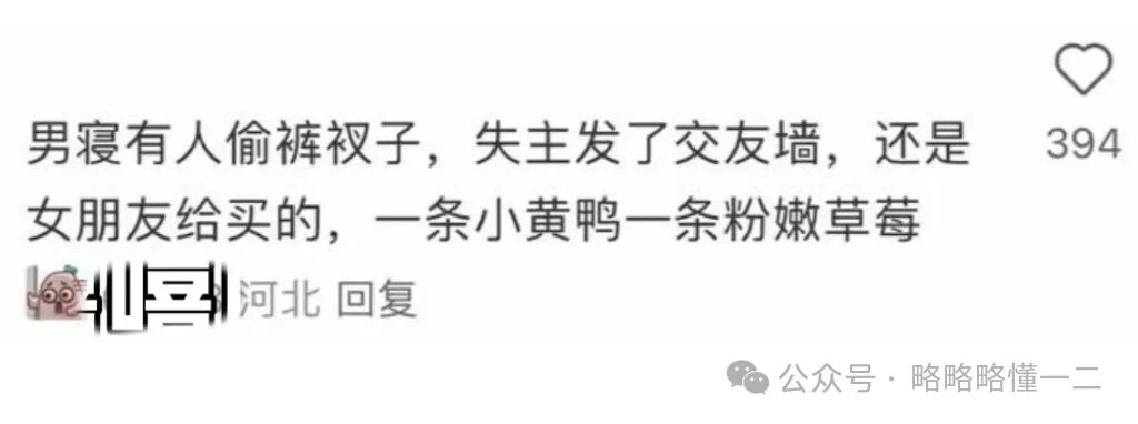 这件事情还在表白墙上公开出来,男寝室有人偷内裤,居然偷的内裤还是这位男生女朋友给买的。小黄鸭和粉嫩草莓,怎么说呢!那画面不敢想。