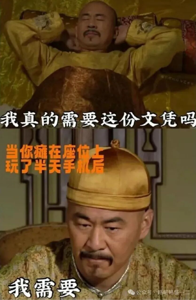 “四大爷”这沉思的表情像极了大学生在思考人生,大学生到了期末考试灵魂拷问:我真的需要这份文凭吗?等大家瘫坐那玩了半天手机之后,突然想通了,自己真的需要这份文凭。
