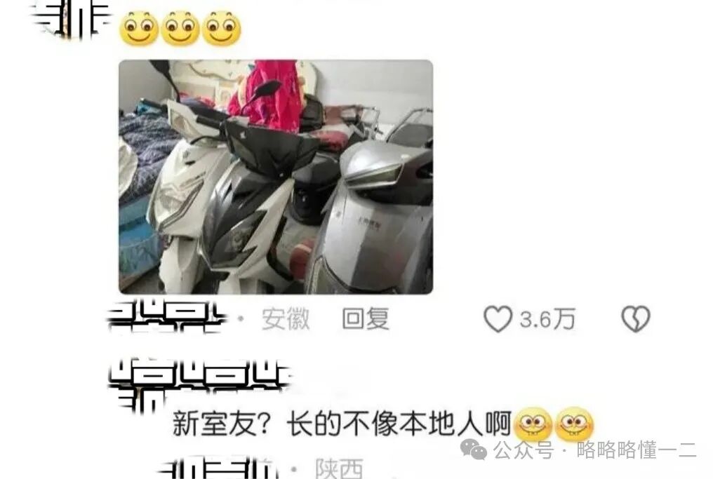 当大学生回到家推门而入的时候,发现自己房间里停了好几辆电动车,网友的评论更加有意思:这是新室友吗?长得不太像本地人啊!让人笑不活了。