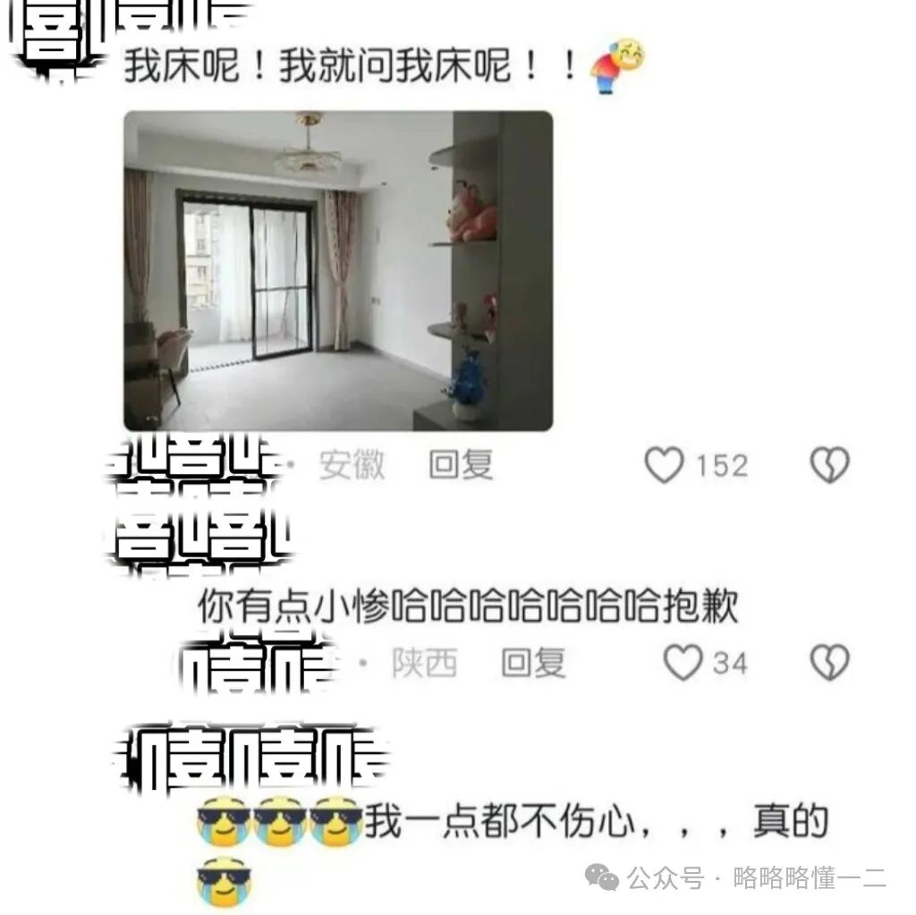 看到这后网友们真的憋不住了,忍不住笑出声来,本不该笑那么大声的,但实在是忍不了一点。所以,你的床到底去哪了?
